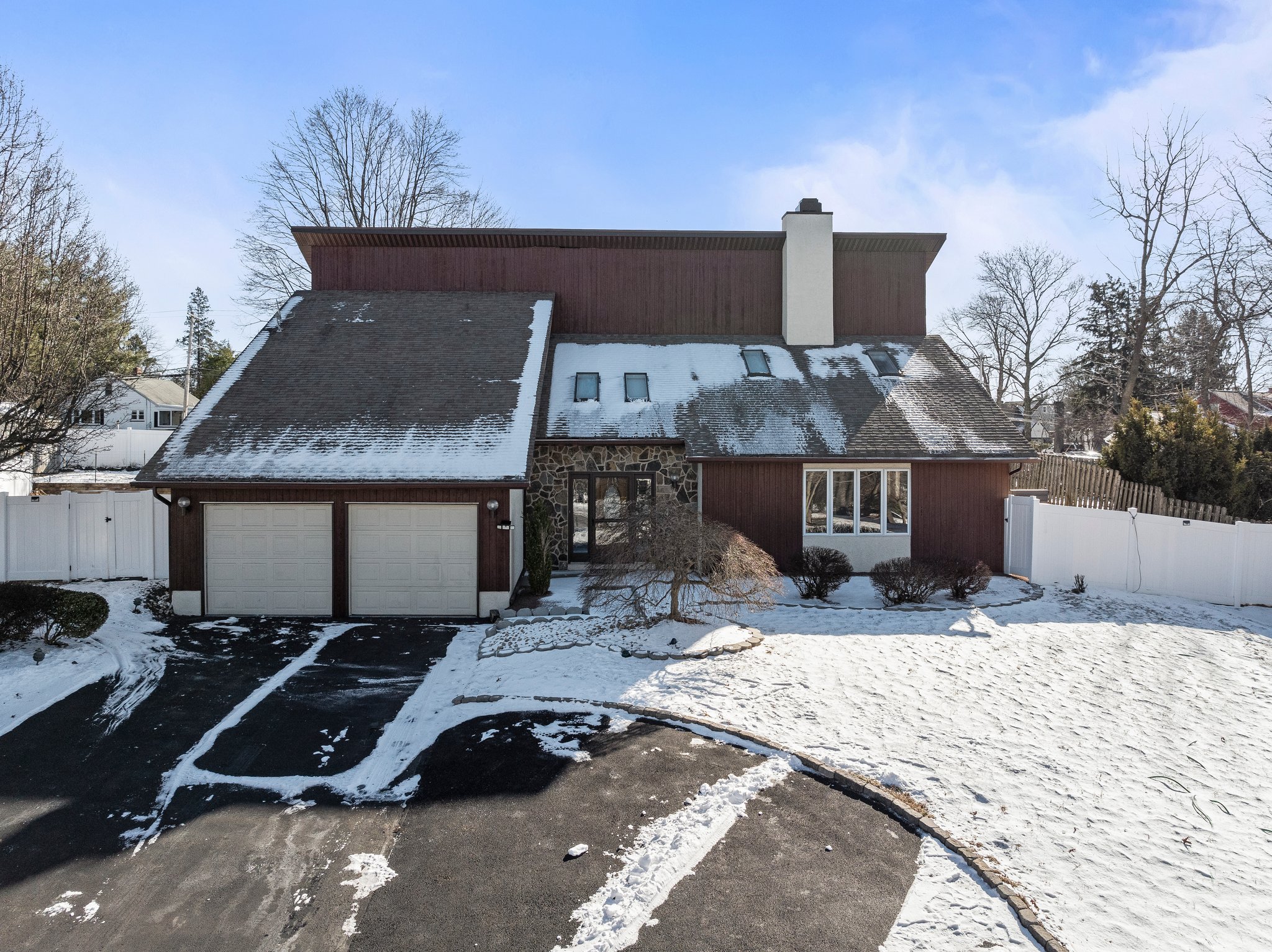 An extended driveway that accommodates at least 5 full-sized vehicles.